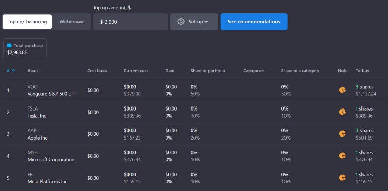 And it gets even better. Once you've defined your targets for each category, Snowball Analytics can recommend the exact number of shares you need to buy or sell to balance your portfolio. This automated feature simplifies the rebalancing process and ensures your portfolio stays aligned with your targets.
