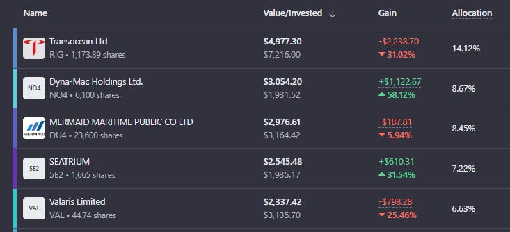 Here's a typical example of a portfolio that includes stocks from both Singapore and the USA.